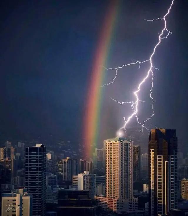 13.在夏威夷欧胡岛拍摄的彩虹闪电照片