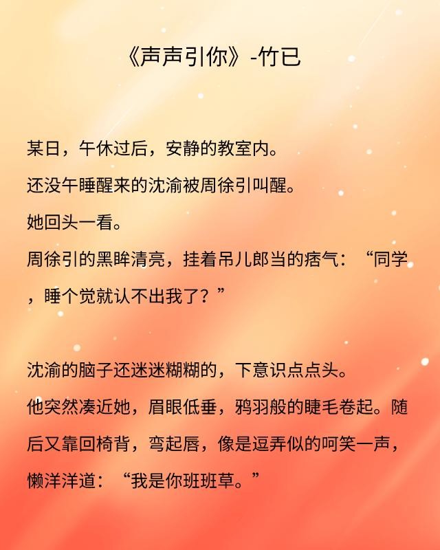 这是一个校园故事,前期女主胖胖的,竹已一贯的甜宠风格,不妨入坑。