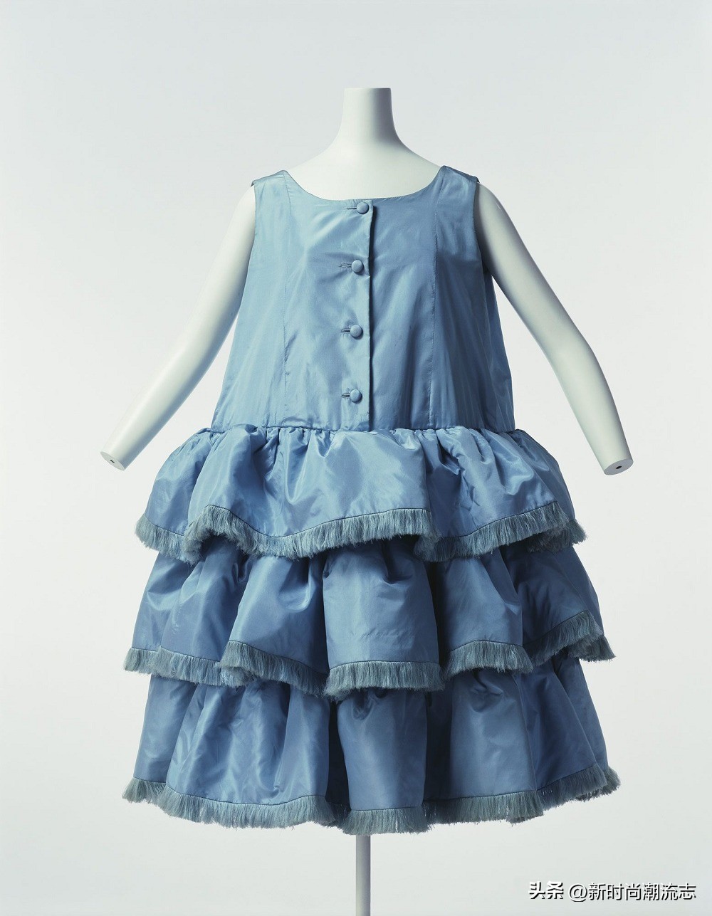 20世纪50年代,Balenciaga 成为引领战后时尚潮流的主要品牌之一,以高腰娃娃裙(Baby Doll dress)、茧形大衣(Cocoon coat)、蓬蓬裙(Balloon skirt)等设计,掀起一场女士时装革命。期间 Balenciaga 与法国时装品牌 Givenchy 合作推出直筒式洋装(Sack dress),更是对当时的女性时装廓形产生重要影响。