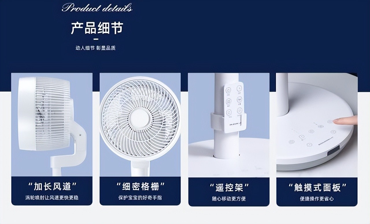 空气循环扇的摇头角度也就是它的送风角度,送风角度越大,风能够触达的范围就越大,效果也就越好。