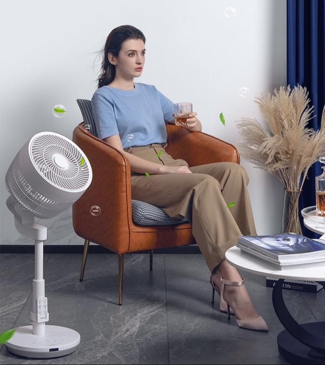 而有了空气循环扇之后,它能让空气快速流动,让室内快速降温,且温度分布更均匀,不用直接对着空调吹都很舒适,而且也更加健康。