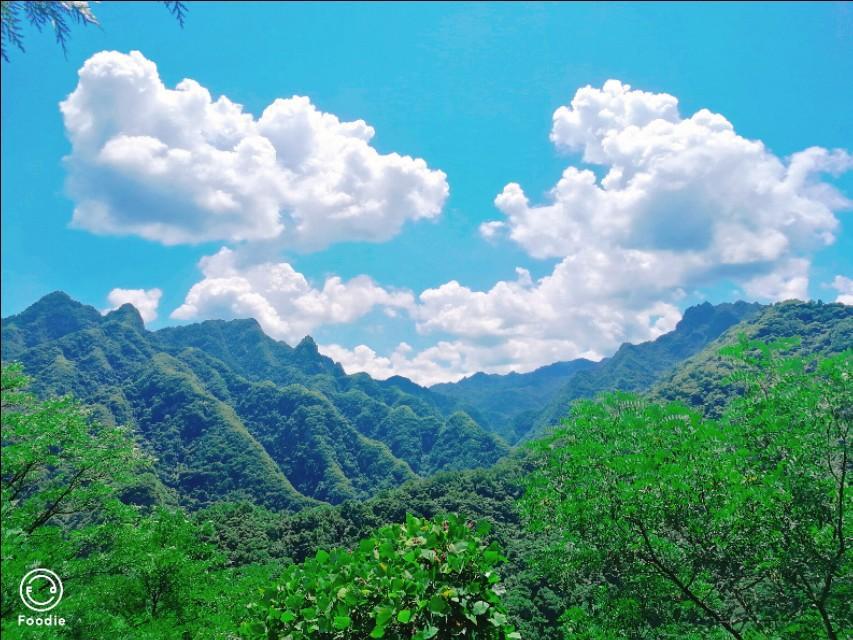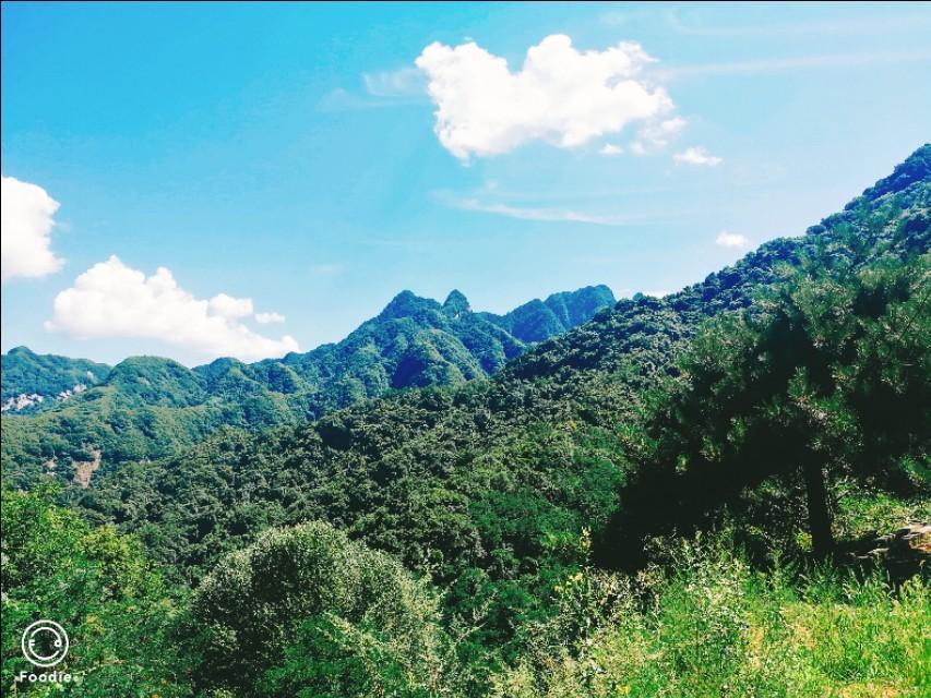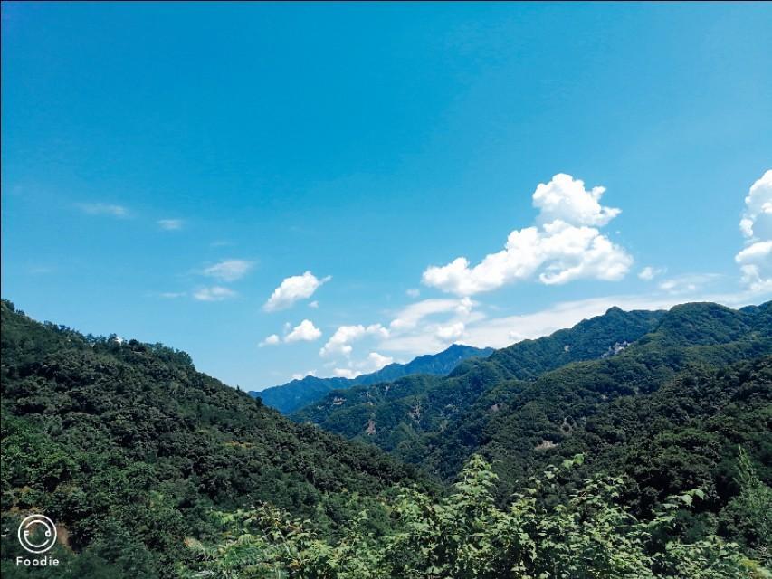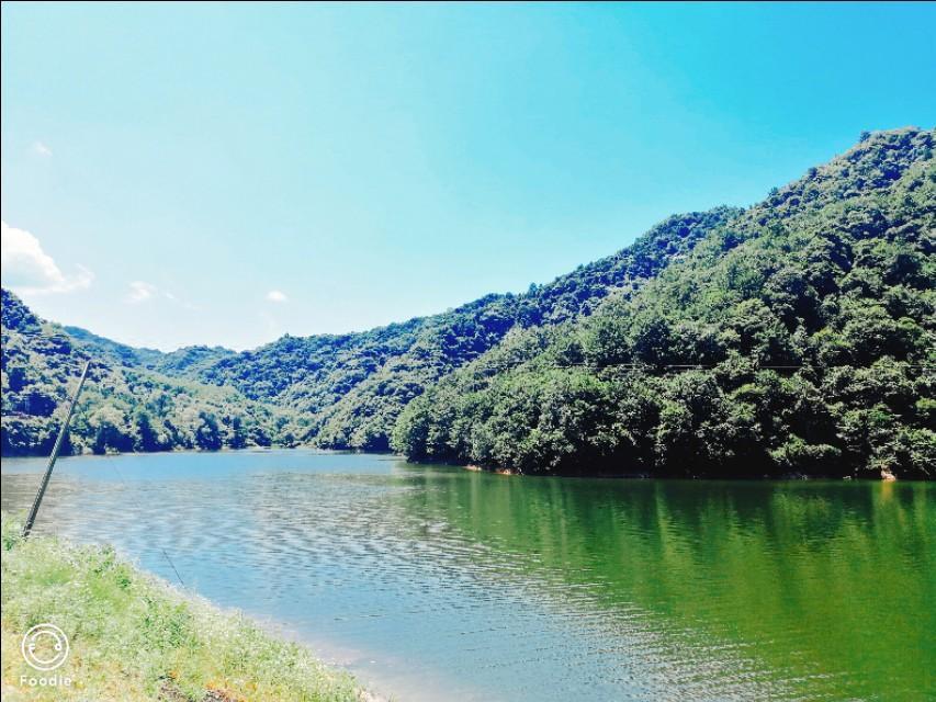 但是沿途森林并茂,绿树成荫,风景特别美。鸡峰山水库附近更是蓝天白云,绿水青山,景色宜人。在这炎热的夏天来山里转转,感觉特别好,最主要的是非常凉快。