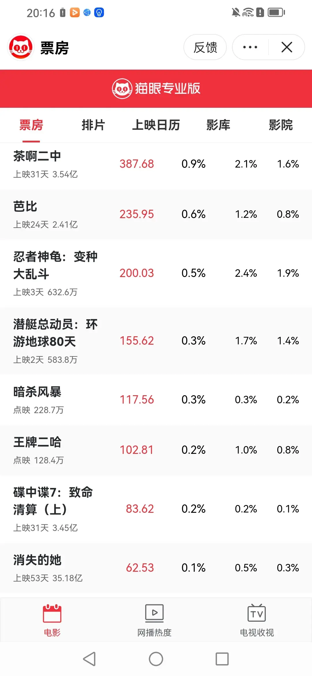 排名第六位的是【八角笼中】今天目前票房是662.24万元,上映39天累计票房21.72亿。八角笼中后劲明显不足了,票房冲不上去了。