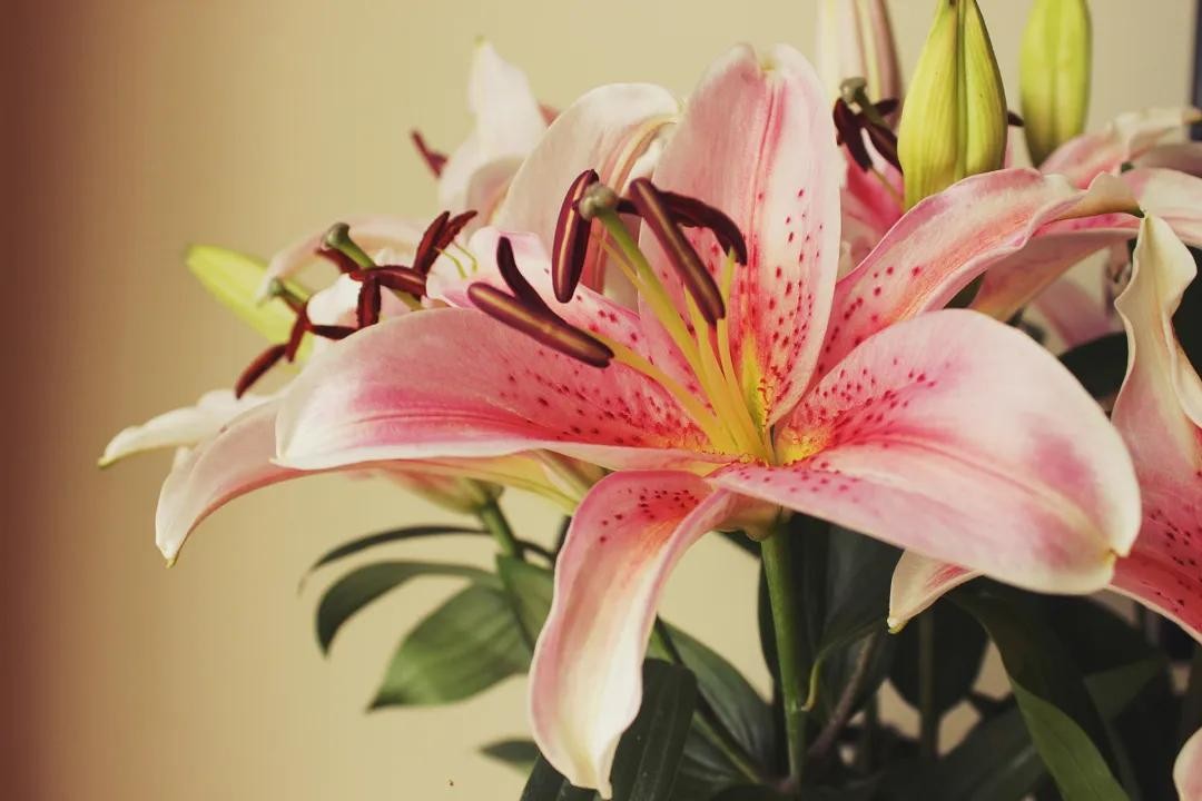 百合花喜欢凉爽、干燥的环境,较耐寒,怕高温高湿。在养护时,要选择疏松肥沃、排水良好的土壤,并给予充足的光照和适当的水分。百合花不仅具有观赏价值,还可以食用和药用,具有润肺止咳、清心安神等功效。