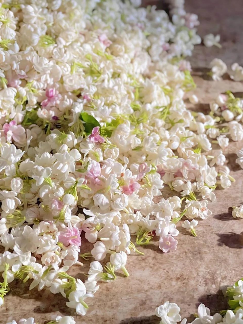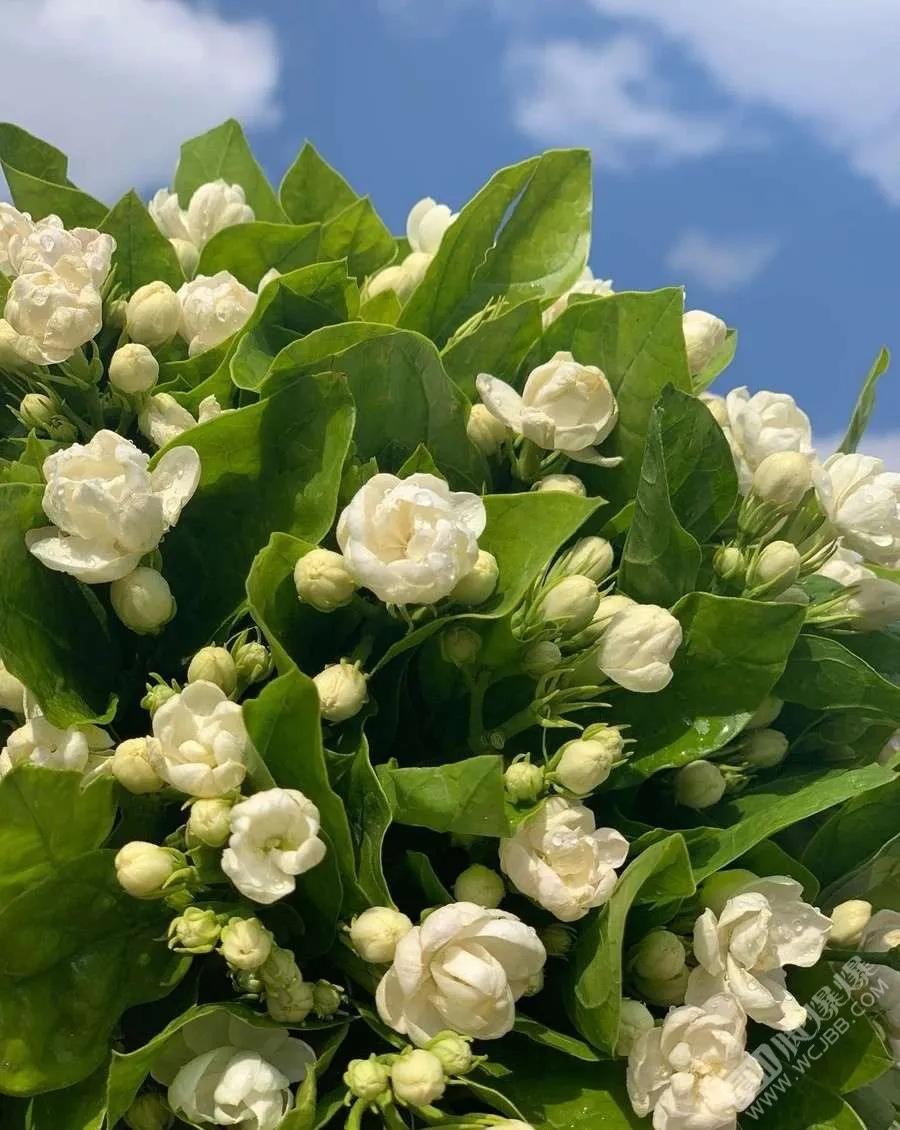 茉莉花素洁、浓郁、清芬,它的花香被誉为“人间第一香”。茉莉花花朵小巧玲珑,洁白无瑕,通常在夜间开放,花香更加浓郁。常见的茉莉花品种有单瓣茉莉、双瓣茉莉和重瓣茉莉,单瓣茉莉香味最浓,双瓣茉莉次之,重瓣茉莉花香相对较淡,但花型更加美观。