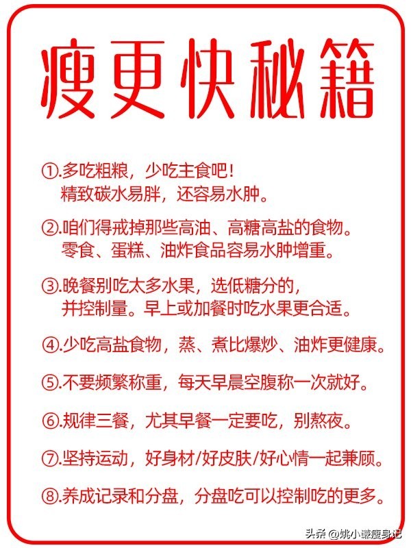 减肥真的很简单,如果你觉得很难,那一定是方法错了!我花了3年时间研究了无数个成功减肥案例,精心整理了一份月瘦20斤减脂方案,需要的人比较多,关注我点赞收藏,评论回复“1”,我会免费发给你,让你少走更多弯路!