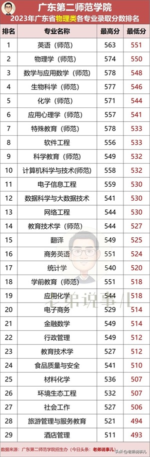 广东第二师范学院热门专业录取分数排名(广东省2023年本科招生)
