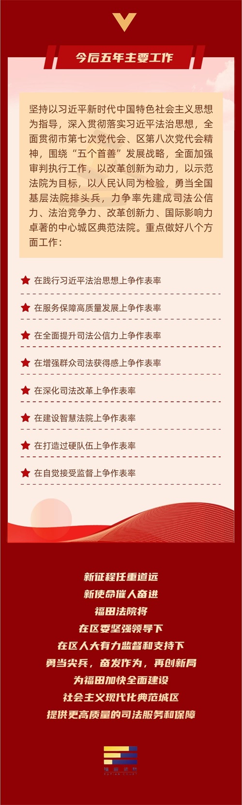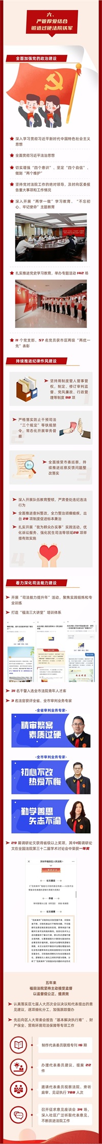 司法透明度位列全国基层法院第一、设立全国首家互联网和金融审判庭、全省率先探索实施商标权侵权惩罚性赔偿制度、司法改革入选数量位居全国基层法院第一、设立深圳首家诉源治理非诉解纷工作中心、建立全省首个在线调解“融平台”……10月18日,在深圳市福田区第八届人民代表大会第一次会议上,福田区人民法院党组书记、院长詹旭伟代表福田区人民法院向大会作报告。