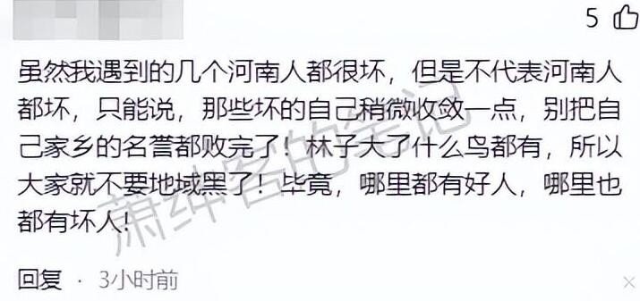 林子大了,什么鸟都有,这个道理毋庸置疑。但是,在现实中的河南人,并非普遍被描述的那样。他们为人实在,待人友善。作为中国外出打工人口最多的省份之一,河南人在外打拼的遇到的概率相对较高,这也增加了被评价的可能性。但值得注意的是,这并不代表每个河南人都需要背负一些别人的负面印象。