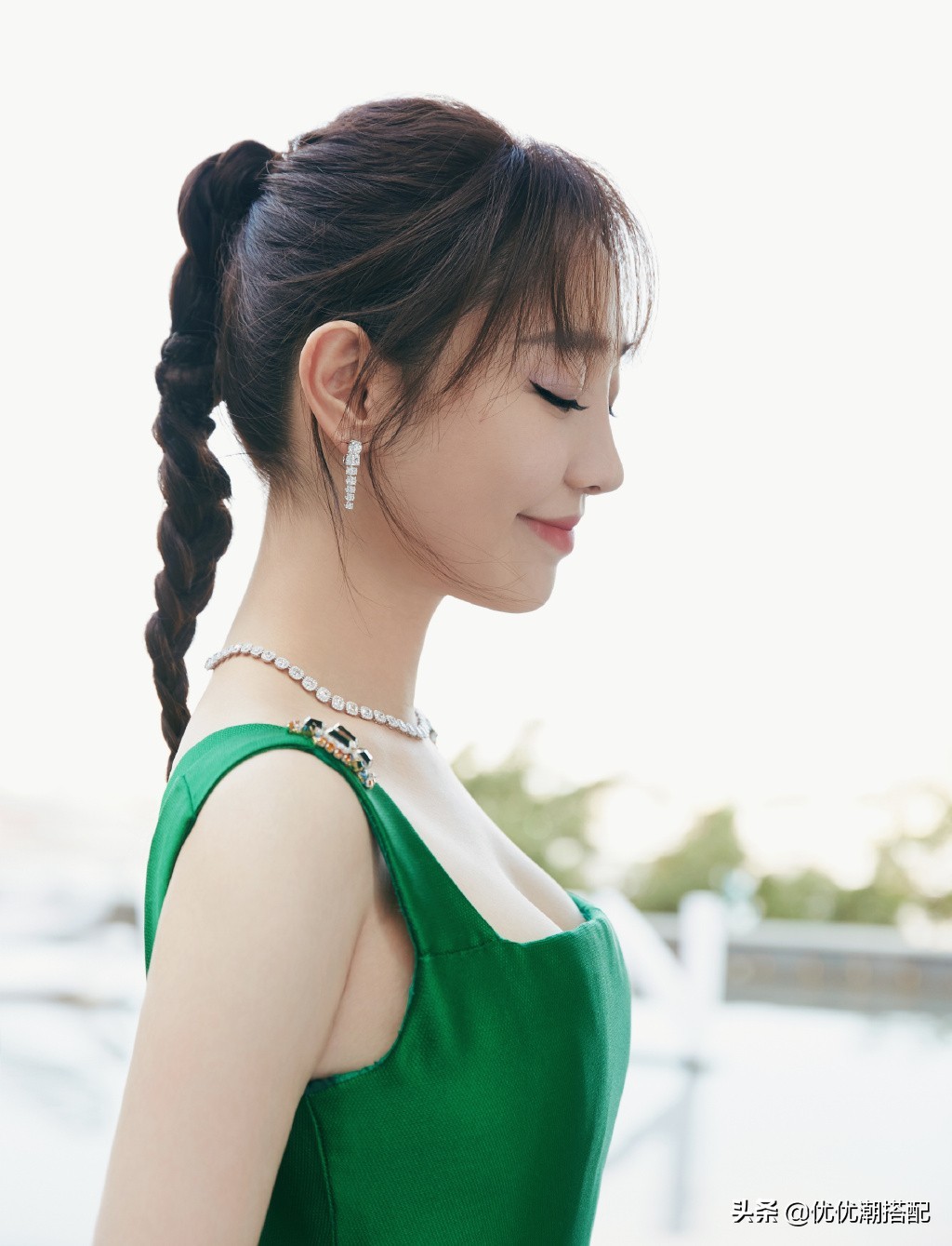 看得出来,近期白百何保养的非常不错,脸部的明显变小了,颜值重回巅峰状态。精致的妆容搭配俏皮的麻花辫,减龄效果明显,少女感十足。绿色系的连衣裙,衬得皮肤白皙,漂亮。小清新的造型,甜美可人,扮嫩的功夫简直逆天了!