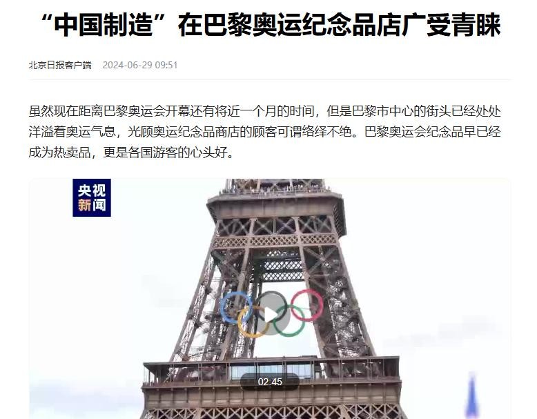 中国制造早就在世界大赛中崭露头角了。不光是这次巴黎奥运会,就连去年的东京奥运会和欧洲杯,使用的设备、食品饮料、文创周边等,很多都是中国生产的。这充分展现了中国制造的实力。