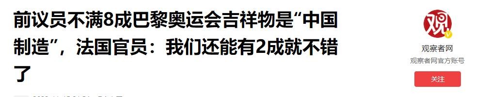 法国人的尊严去哪儿了?法国人最近有点不高兴,原因竟然是因为2024年巴黎奥运会的吉祥物玩偶大部分都是"中国制造"。
