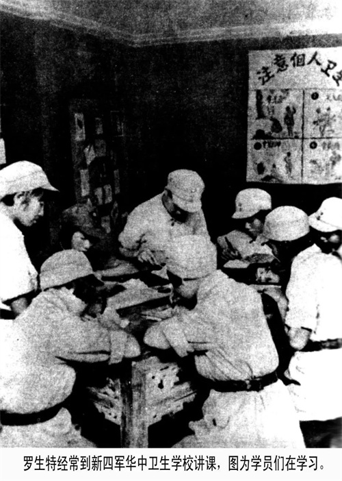 战争年代,根据地缺医少药,在罗生特的帮助下,新四军开办了华中卫生学校,为新四军培训出了一批出色的医务人员。华中卫生学校是现在江苏医药职业学院的前身。