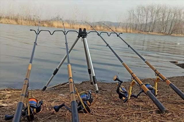 我们可以将岸筏竿插入岸边的泥土中,在竿稍位置悬挂上一枚铃铛即可,垂钓时可坐在旁边的椅子上休息,当有鱼咬钩时,鱼在水中吞饵咬钩会带动竿稍一起晃动,继而让铃铛响起,这个时候我们只需要扬竿刺鱼即可。