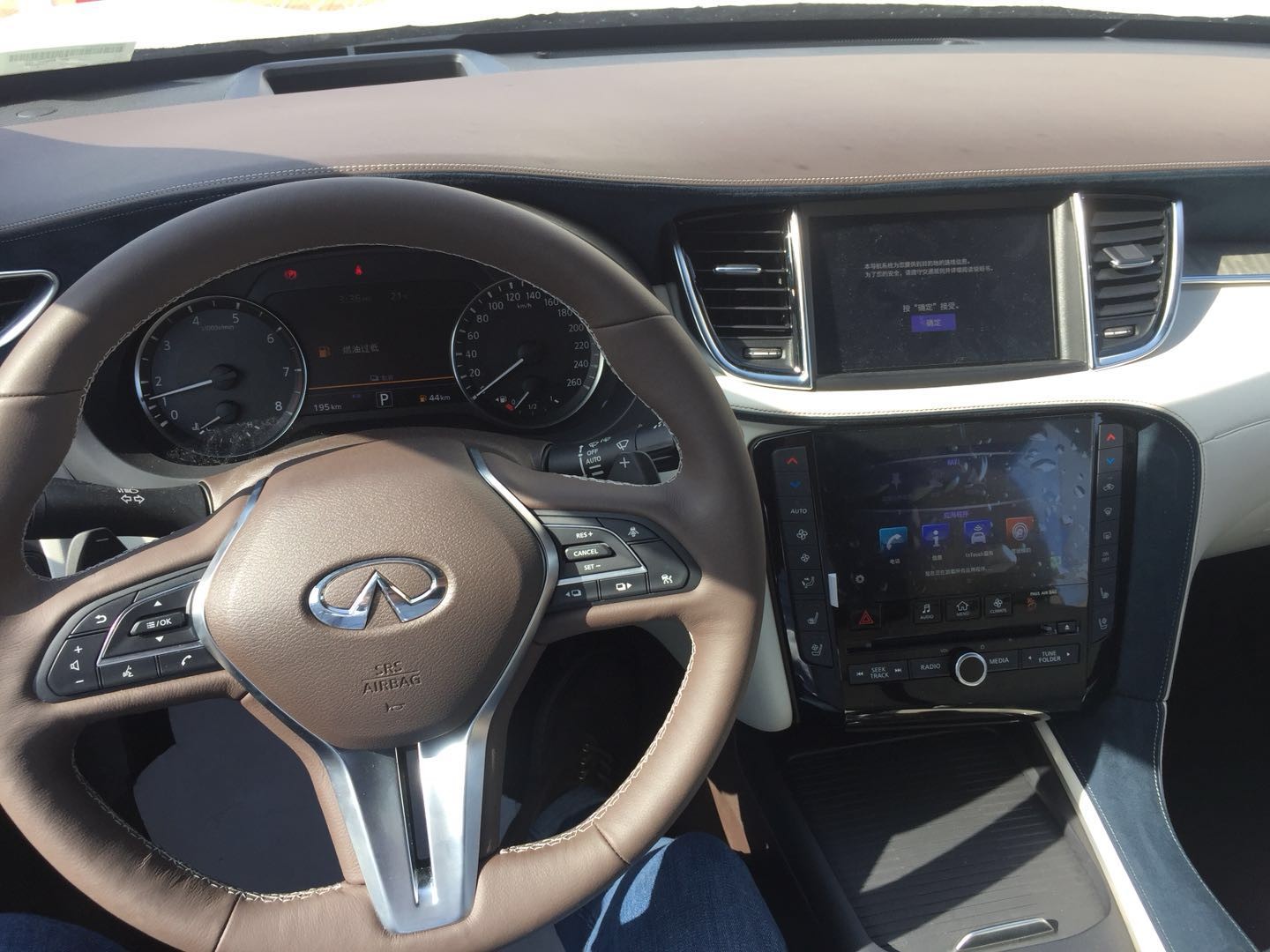 东风英菲尼迪QX50终于出了新款,有幸在第一时间试到了新车,水波纹式的前中网时尚且带有运动气息的车身,我想会吸引了不少年轻人眼球,内饰方面分为两种,一种就是比较常规的黑色黑内,另外一种就是现在很流行的撞色风格,不仅撞色,还有木式装饰,翻毛皮等,就连车顶用料都是翻毛皮材质,据内部人士听说这款撞色内饰是与LV联合打造。下面我也附上了视频,由于小弟不是专业编辑人士,以下视频纯是feel style my first time ,非喜勿喷,谢谢!
