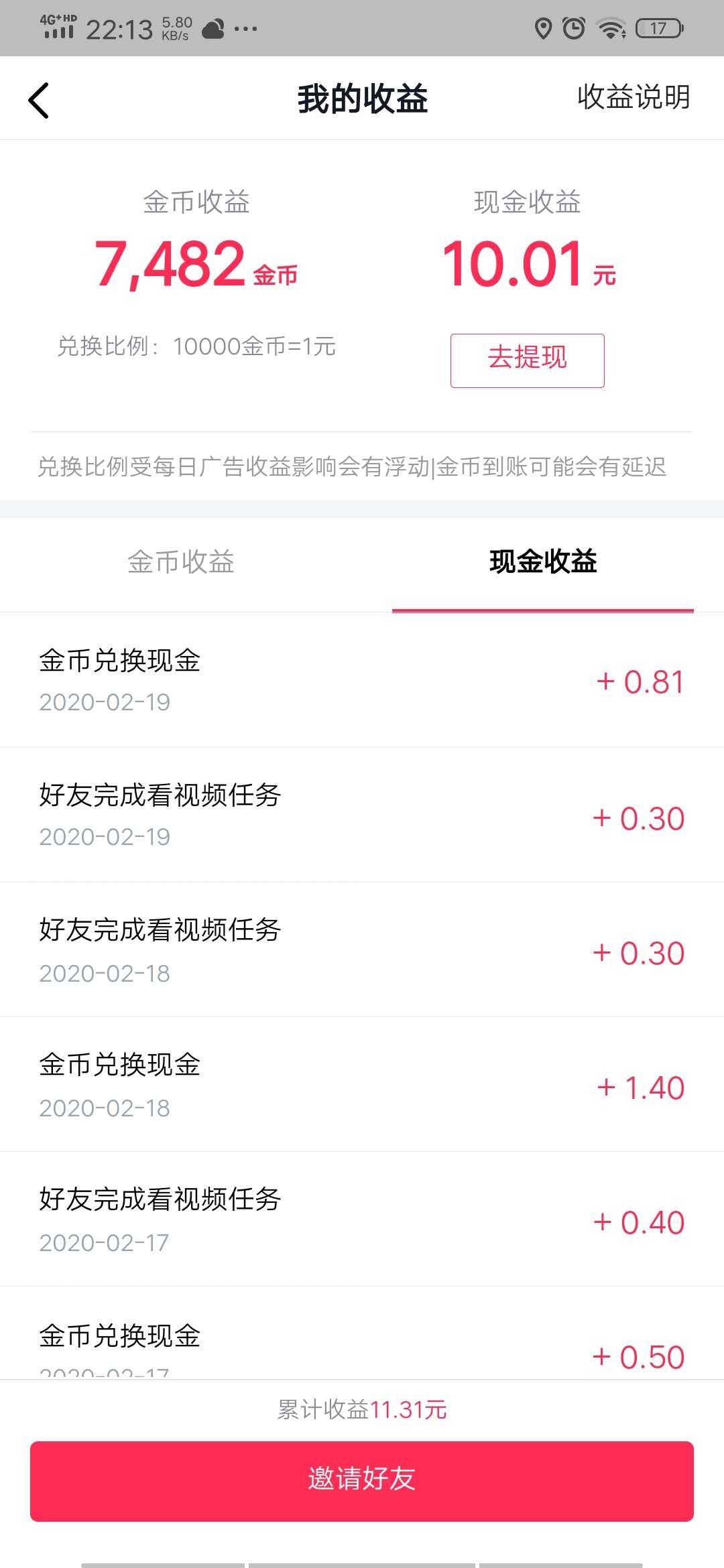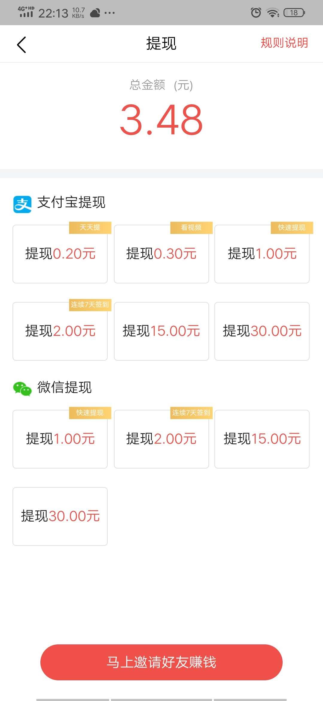 邀请一个好友,当天就给4-5元,后面几天每天能给1元。提现还是比较容易,套路少,我玩了10天,期间邀请了有3-4人,总共提现了30元,帐户上还有9块多。
