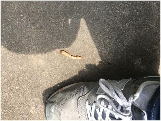 终于在最后一段,看到了一个白色蠕动的虫影,然后用细铁丝将其勾出来。这就是那讨厌的天牛幼虫,看着真恶心,屁股上还在不停的拉木屑粑粑,如下图: