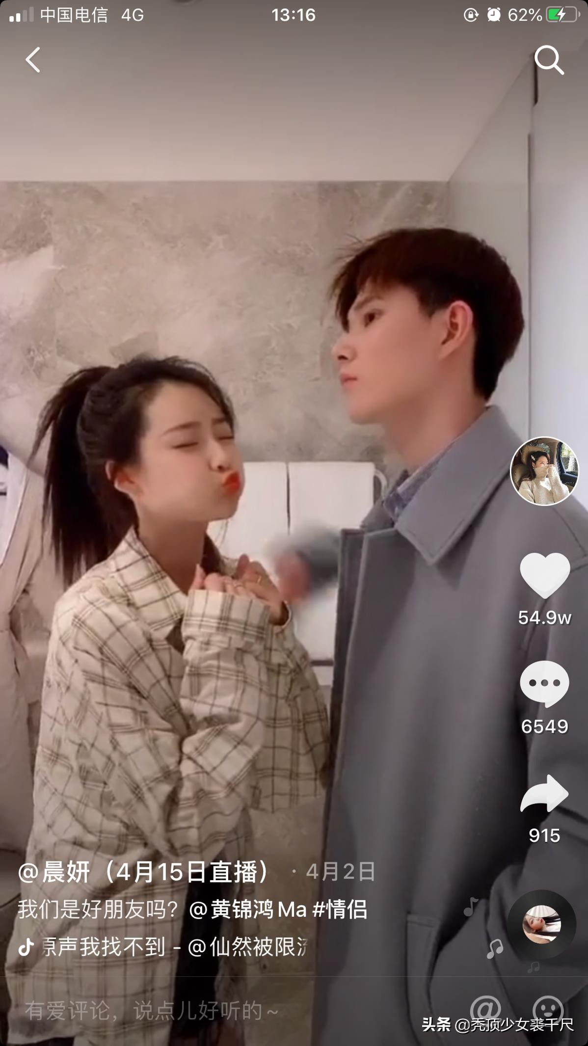 长得美还有才是种怎样的体验?让抖音达人晨妍来告诉你!在抖音拥有1281万粉丝的她,不仅是各领域都hold住的全能达人,还是让汉服“出圈”的古典佳人。长相甜美的她还拥有一段甜甜的爱情,“霸道总裁”般的男友黄锦鸿把晨妍那是“宠上天”了,让人羡慕不已!