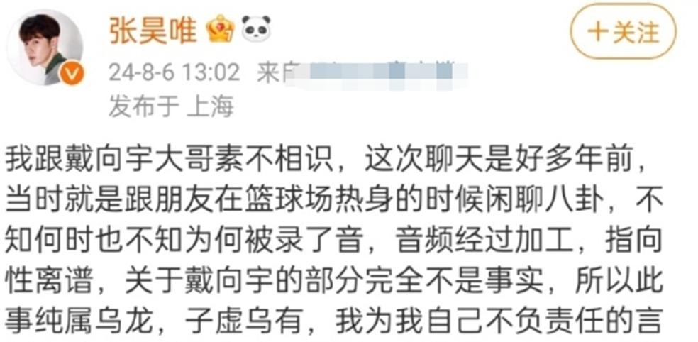 录音曝光后,张昊唯赶忙发声明撇清关系。什么"不认识""多年前的事""音频被加工"balabala。这位仁兄,你是真不认识还是装不认识啊?如果真不认识,那你怎么知道人家的"私密事"?如果是装不认识,那你这演技可真够差的。怪不得自称"快糊了",原来是因为演技不行啊!