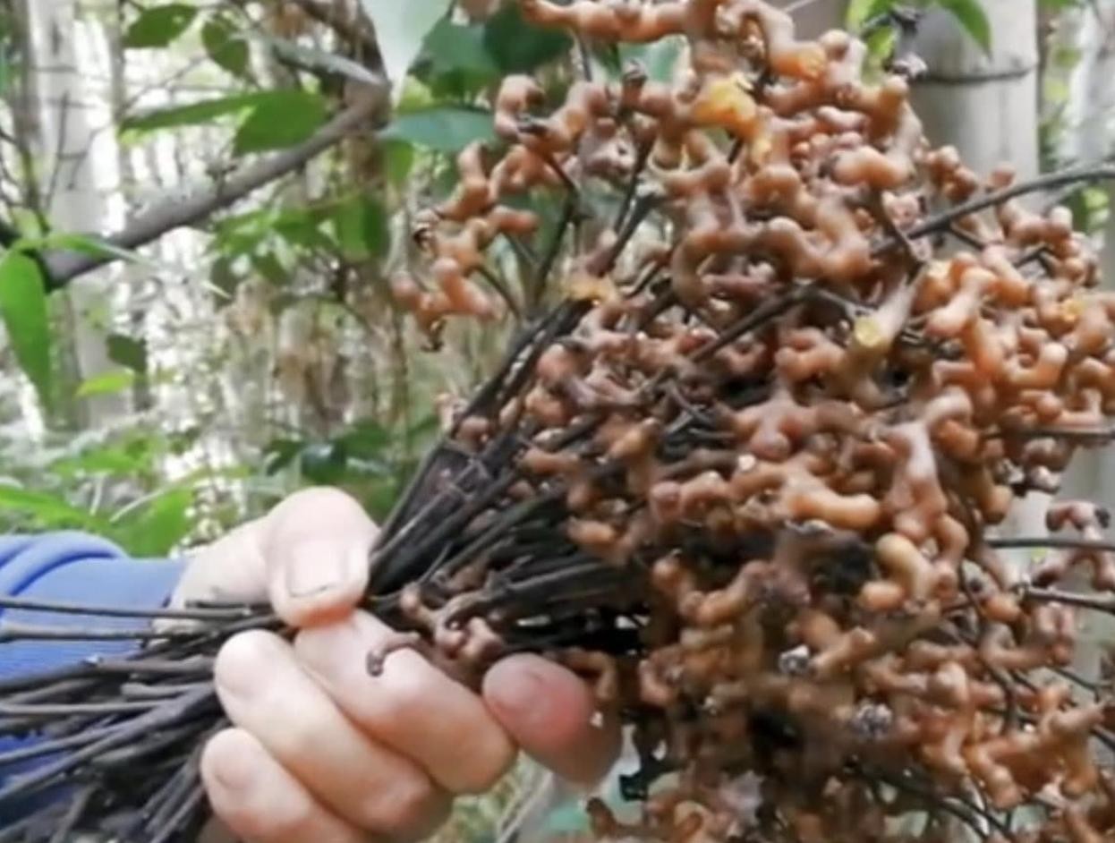 此种“果树”长在山沟里,果子比山莓奇特,人称“金钩梨”,珍贵!