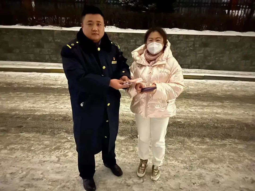次日,列车长李想担当的列车再次途经双鸭山西站时,失主车女士顺利取回了丢失的背包。经查验,包内钱物一样不缺,车女士再次向列车长表达了感谢。