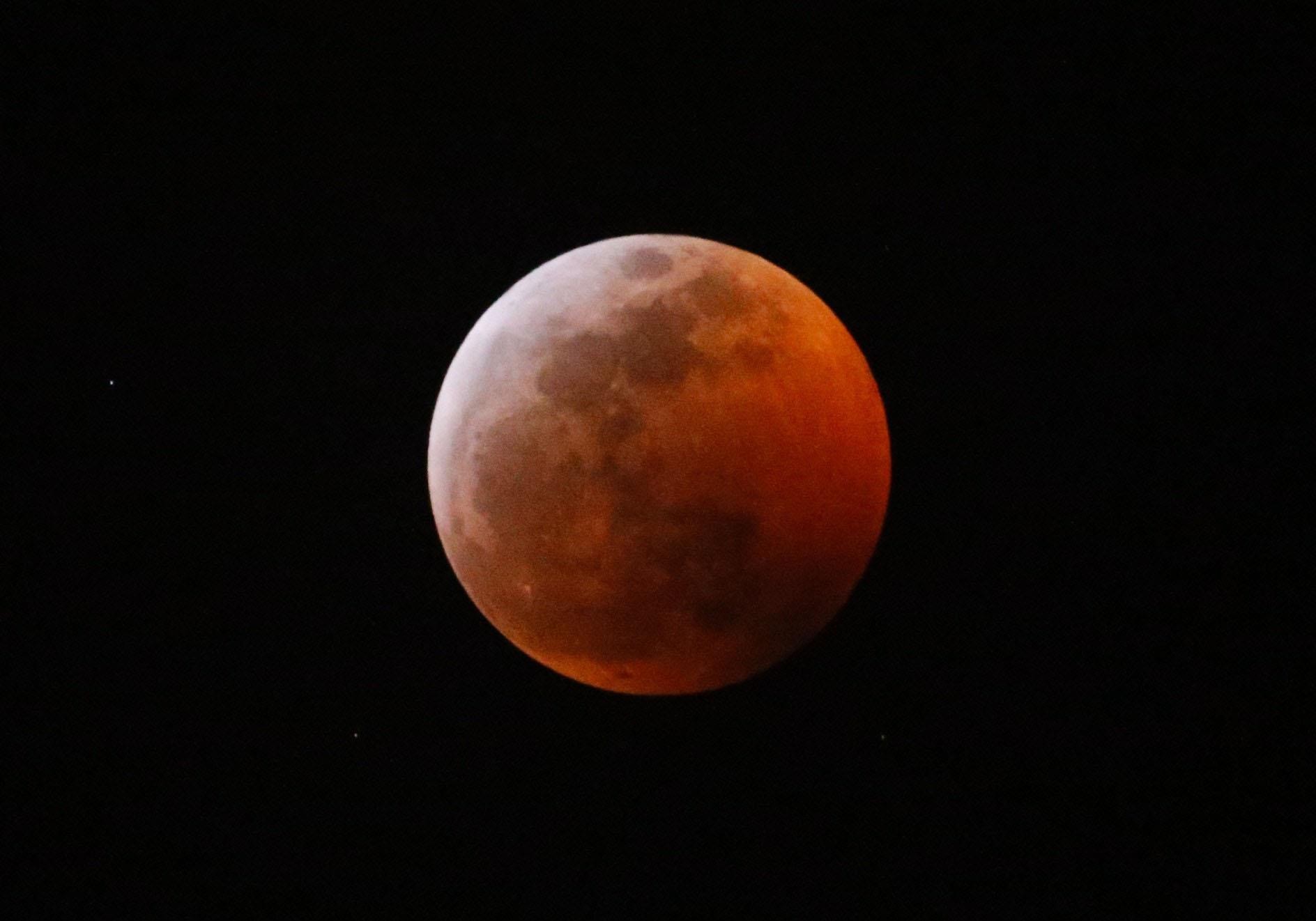 罕见超级血狼月现身欧美,抬头就能看到超大红色月亮!