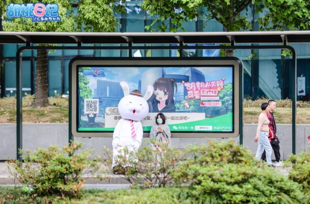 在杭州西湖区紫荆花北路的浙大紫金港站台、桥弄街的大运河站台(地铁D出口)、江干区兴业路的市民中心路北站台,这已经已经根据《胡桃日记》元素装点一新。也正因为如此,来到这里的桃子们纷纷与特色站台合影留念,并发到社交平台与朋友们分享。