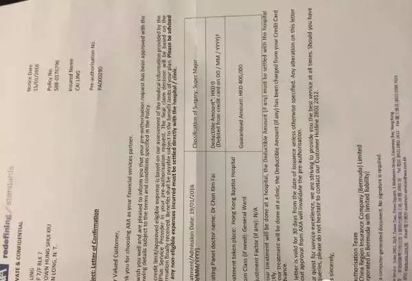 这是在客户同意的情况下,分享给所有还没有保险的朋友们,客人(玲姐)自己深切感受到香港医疗的先进性,(她有亲戚也是这个病,在国内医院没撑过去就离世了)。两次手术(60 万+40 万)全部由 axa 安盛公司支付,期望有更多人了解并懂得利用保险来保障自身。