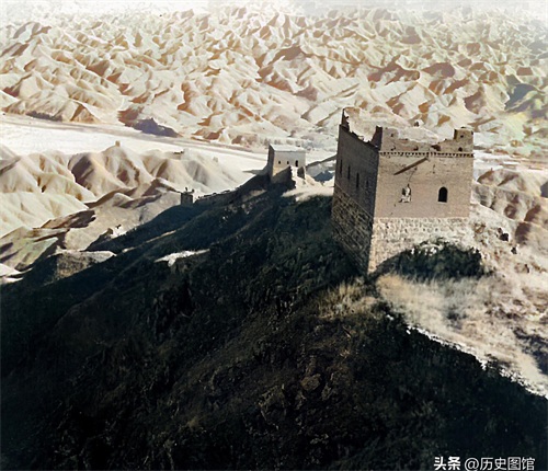 城墙上布满了岁月的皱纹,烽火台东倒西歪,仿佛随时都可能倒下。