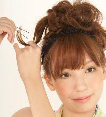 扎一款和花朵相似的花苞头发型,从花苞头盘发开始存在,就越来有越多的款式出现了,今天小编送上的是齐刘海的花朵型式花苞头发型,高盘发发髻蓬松,刘海细碎,很柔和的款式。
