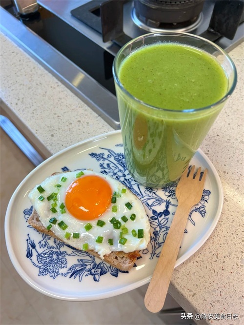 早上煎一个单面蛋,再搭配一杯果蔬汁,简简单单,营养健康,关键是超刮油。
