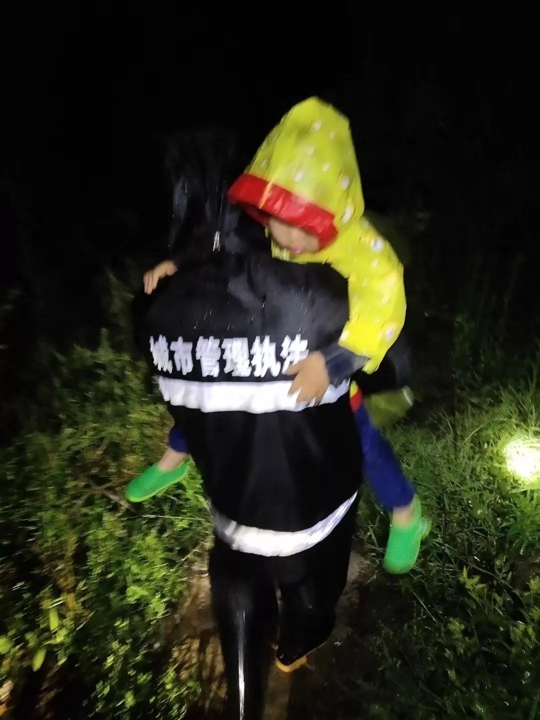 一位民警背着一名儿童