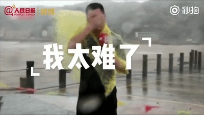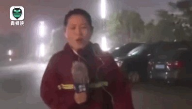 #气象主播脸被台风吹变形#