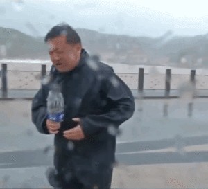 下面这位“台风专用记者”