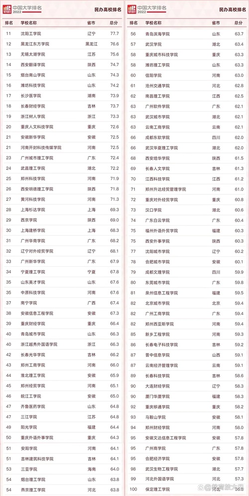 上述10所高校位居软科2022中国大学排名之民办高校排行榜前十名。