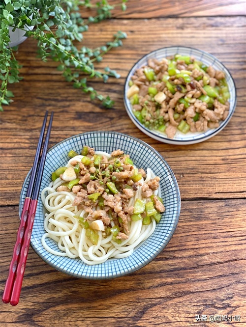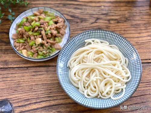 1、做这份面,手擀面或者鲜面条是首选,没有的话也可以用干面条代替,煮好以后一定要过冷水,拌面的时候筋道又防粘。