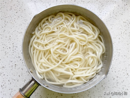 4、汤锅加入清水煮沸,下入鲜面条煮熟,煮熟以后过冷水备用。