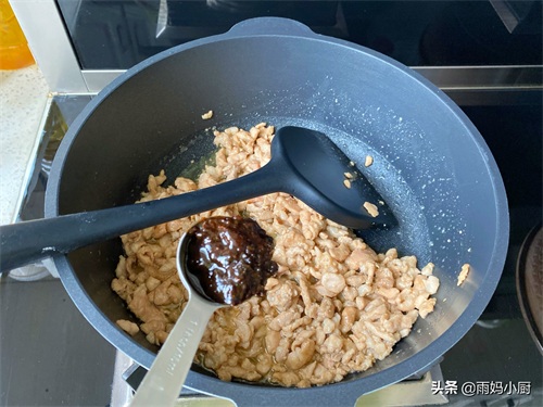 6、加入1勺豆瓣酱,翻炒入味。