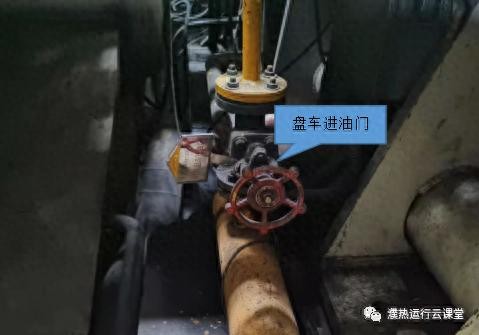 b)盘车投入前检查开启盘车液压系统进油门。
