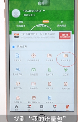 1、首先点击我的,选择“我的流量包”。