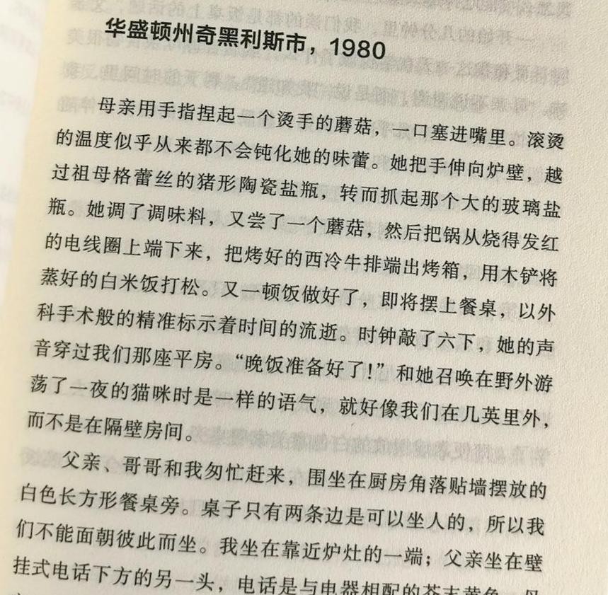 在格蕾丝的回忆中,母亲是一个异常坚强、勤奋的女性,正是她的坚强和勤奋养活了她们母女。在格蕾丝的记忆中,生日时候,母亲会给她煮海带汤。思念故国时,母亲会做传统的韩国泡菜。她们凭借这些传统韩国食物的滋味,回忆自己的出生地。对故地的情感随着食物而给人以安慰。但,就是这样坚强的母亲,却在格蕾丝二十多岁时患上了精神分裂症,从此闭门不出。