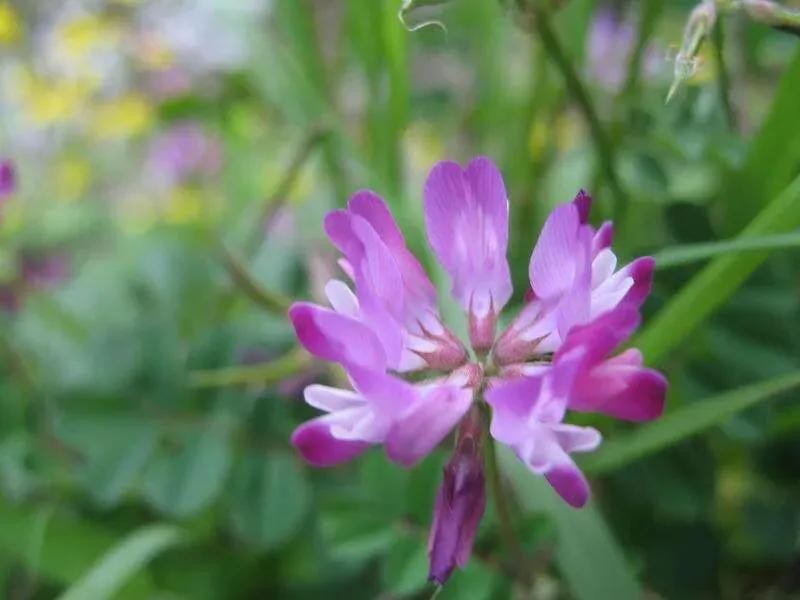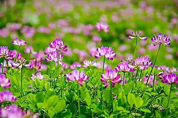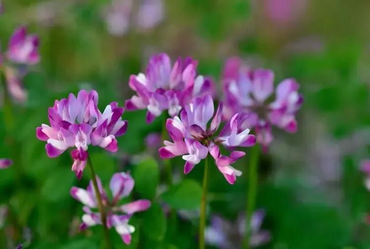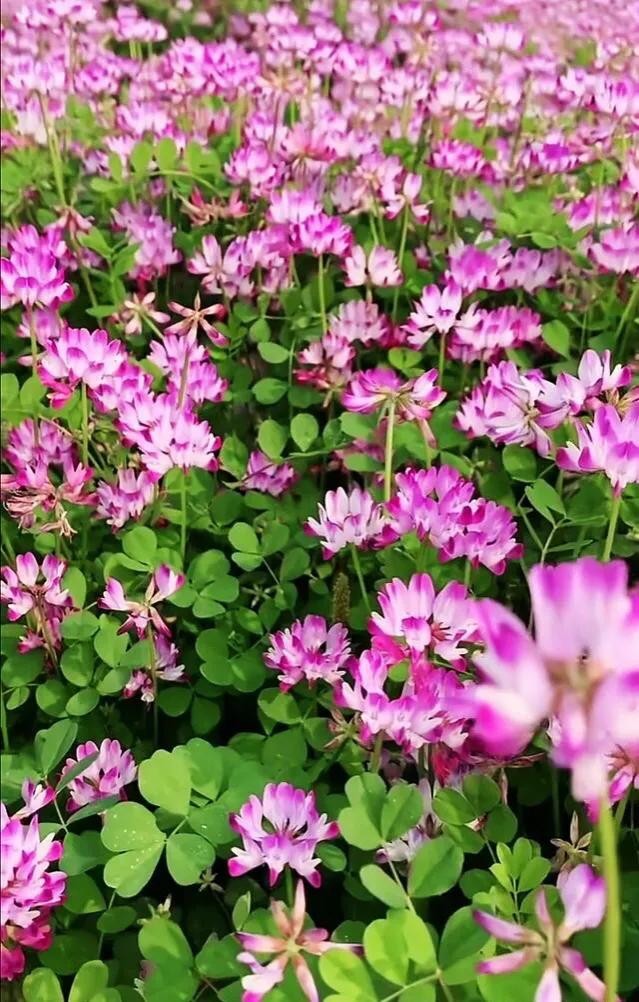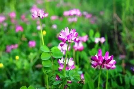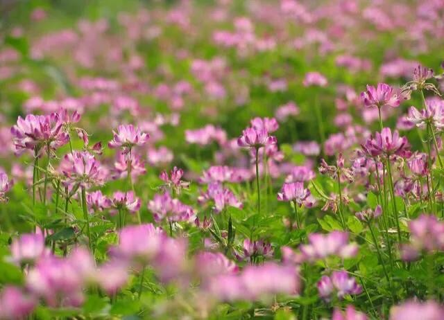 紫云英别名也叫做:翘摇、红花草、草子等。紫云英花语是幸福,因为它在开花的时候花朵会聚集在一起,就像小伞一样。