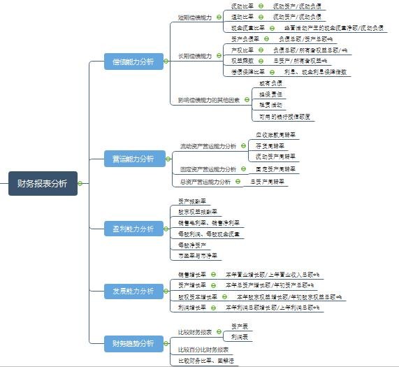 (2)记笔记和复习期末复习时间短,面对书上大段大段的文字以及繁杂的计算公式,期末复习记忆是比较困难的,通过思维导图的梳理有利于记忆,提高期末复习效率。如小编在复习时整理的财务报表分析的知识点,使原本繁琐的内容变得清晰,复习框架更清晰。