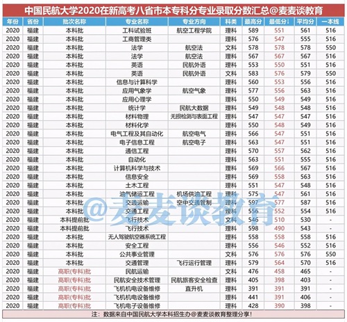 中国民航大学2020在新高考八省市:本专科分专业录取分数汇总