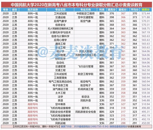 3,中国民航大学2020在江苏分专业录取分数线:(换算了750分满分录取分)