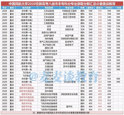 给各位3+1+2新高考八省市的高三同学整理了#中国民航大学#去年在这8省市内,本科和专科,分专业录取最低分数,最高分及平均分情况汇总。表格中标有各省市去年的一本线。方便八省市考生直接查看分差。