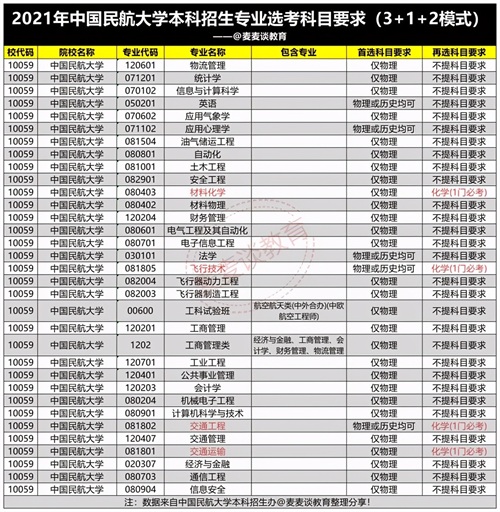 首选科目物理历史均可专业:英语,应用心理学,法学,飞行技术,交通工程;