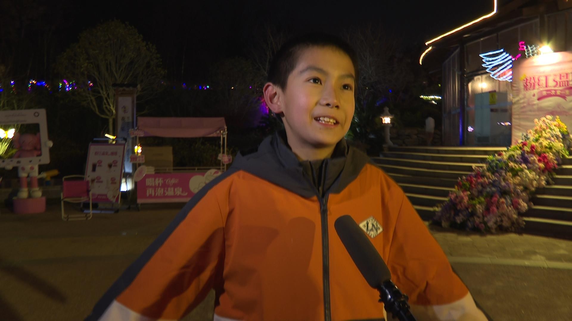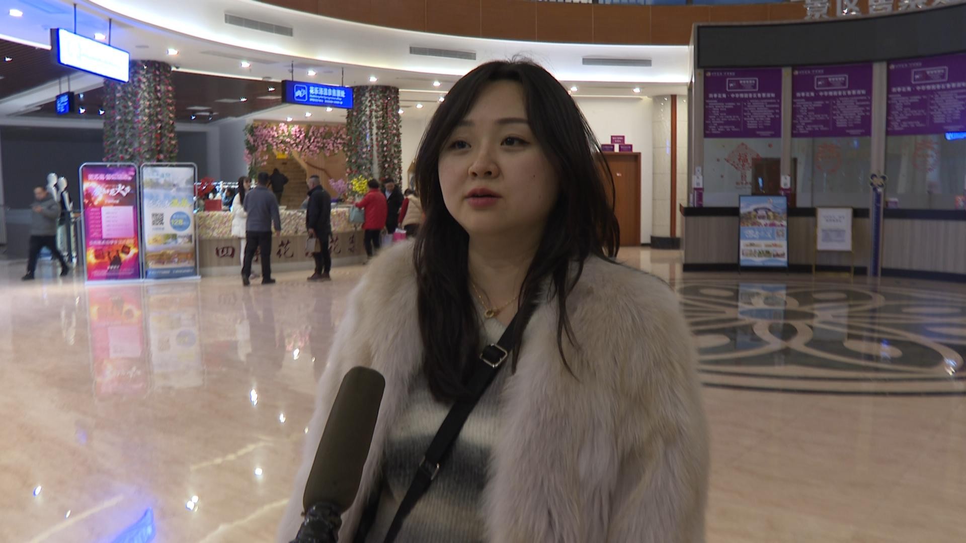 游客 朱成轩:我是从武汉来的,这边的温泉非常舒服,这里还有表演,非常的好看。