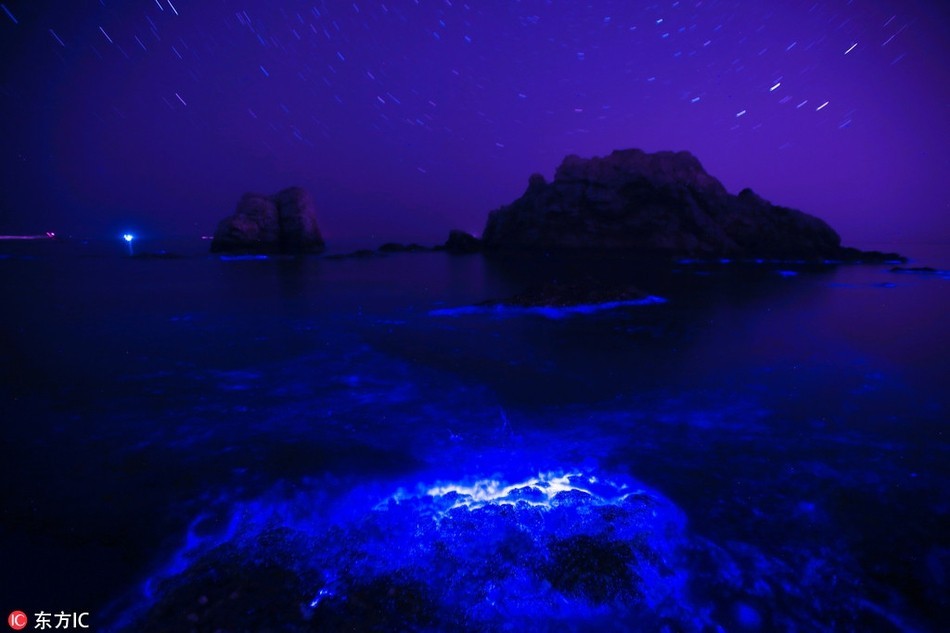 大连海域频现“荧光海”美若仙境 走在沙滩如漫步星空
