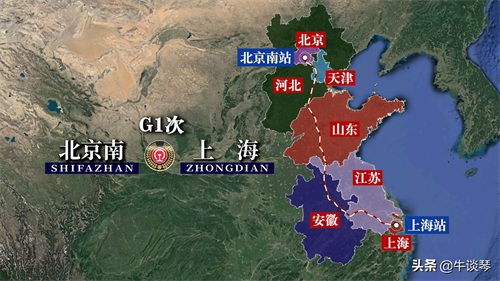 G1次列车运行线路图:北京南站开往上海站,全程1325公里